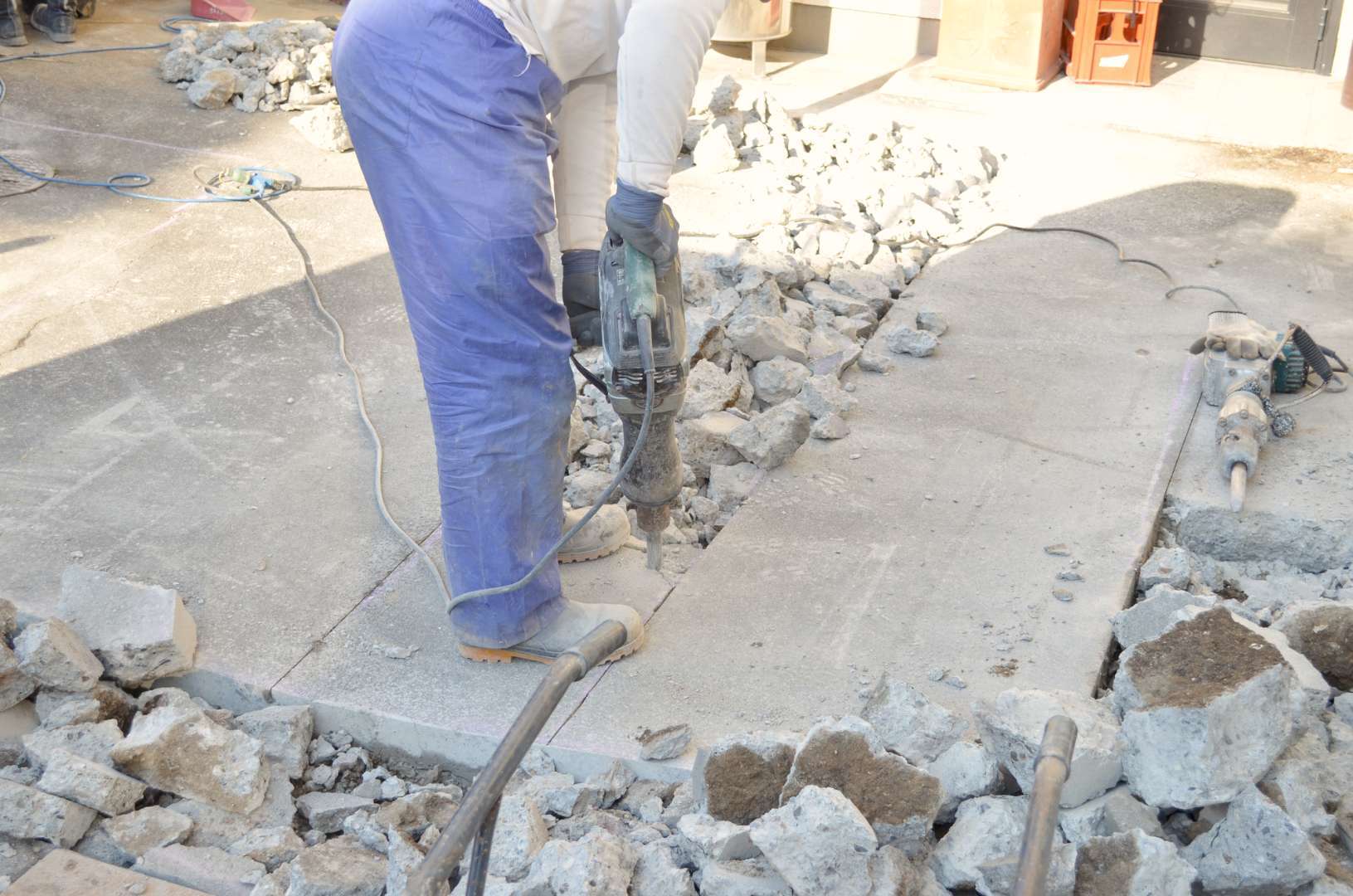住宅密集地や狭い路地奥にある家屋など、大型の解体用重機が搬入できない現場では、職人の手作業による斫りが必須となります。また、重機を使うと振動や騒音が大きくなりすぎて近隣トラブルになりかねない場合も、より小規模なハンドブレーカーなどの機械を使い、少しずつ慎重にコンクリートを破砕していきます。